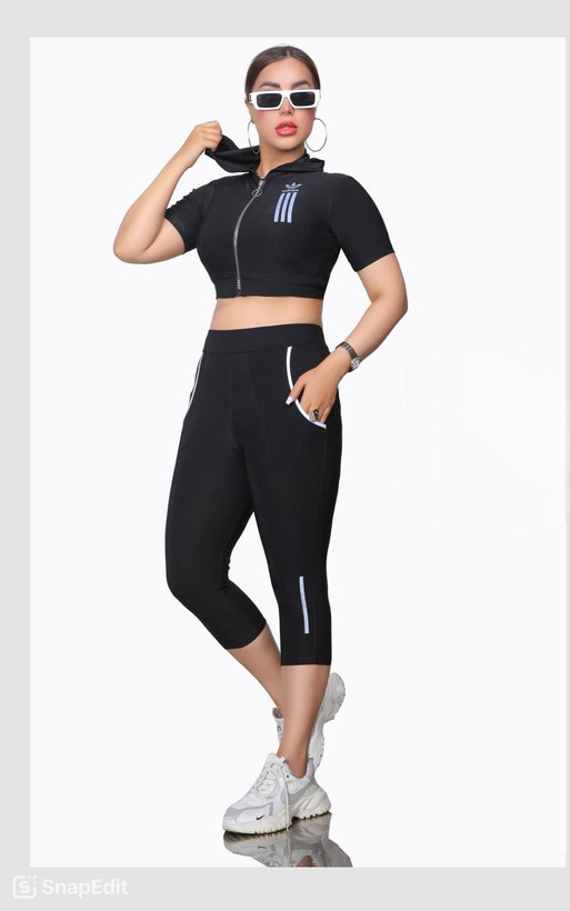 ست کراپ کلاه دار وشلوارک ورزشی زنانه مدل فلامنت ادیداس کد 0536