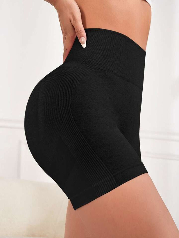 شلوارک ورزشی اورجینال زنانه مدل سیملس کمرگنی پشت پفکی تک رنگ مشکی کد 0615
