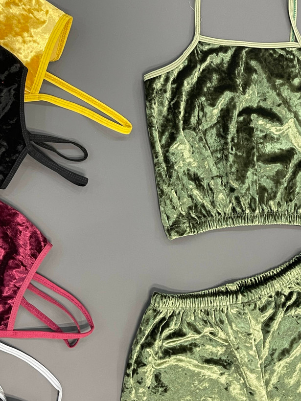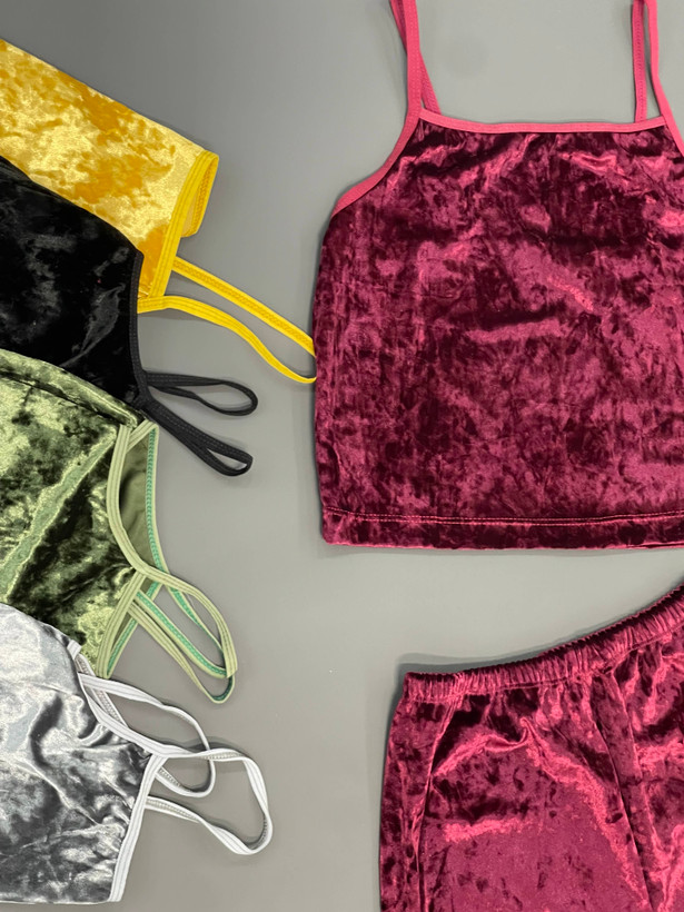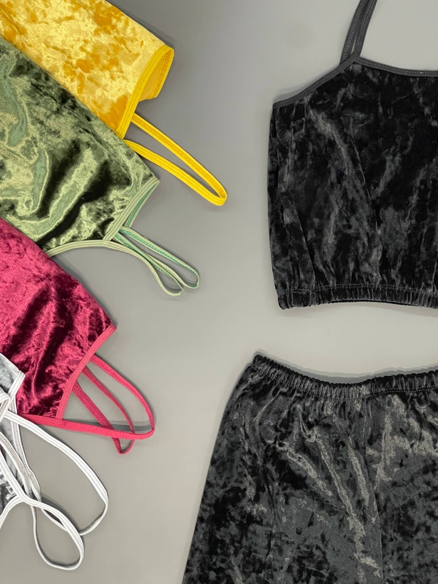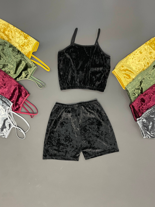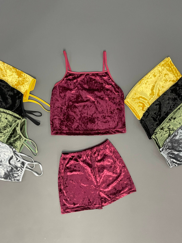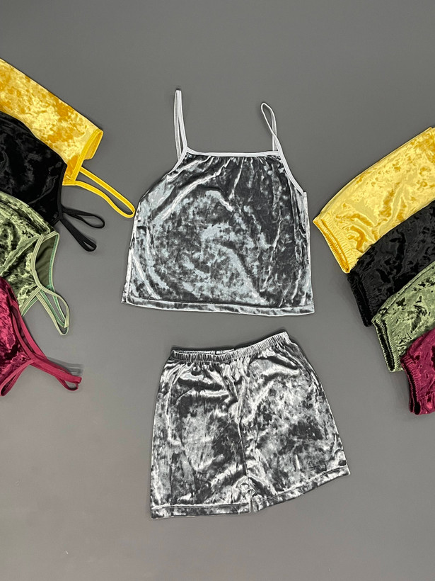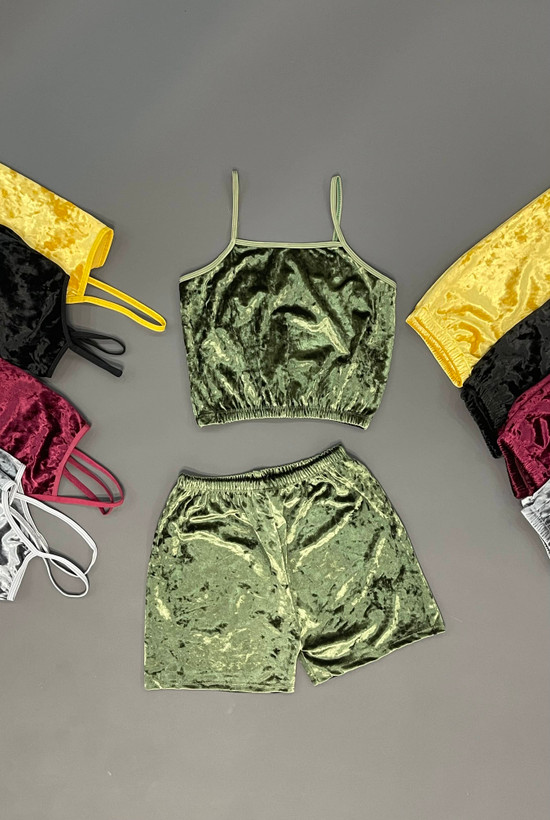 ست خواب نیمتنه و شلوارک زنانه مدل مخملی ساده کد 0542