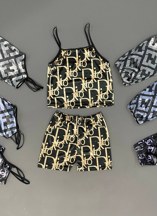 ست خواب نیمتنه و شلوارک زنانه مدل مخمل طرح دار کد 0544