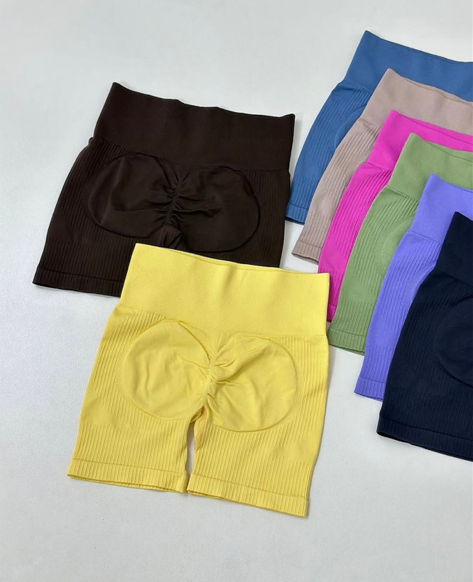 شورتک ورزشی زنانه مدل سیملس پشت چین دار کمرگنی کد 0616