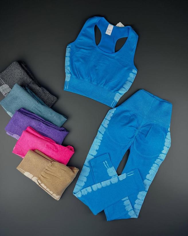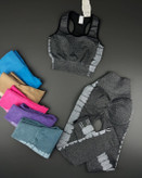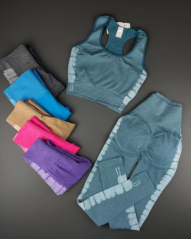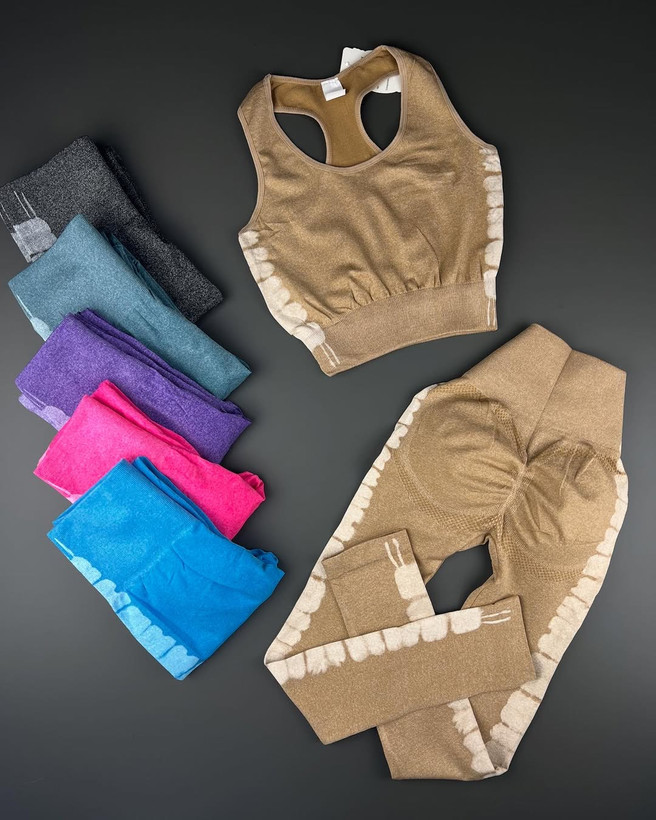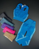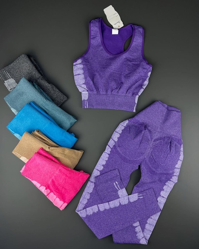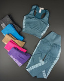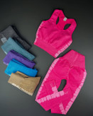 ست نیمتنه و لگ پشت کش ورزشی زنانه مدل سیملس بغل طرح دار فری سایز 0551