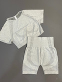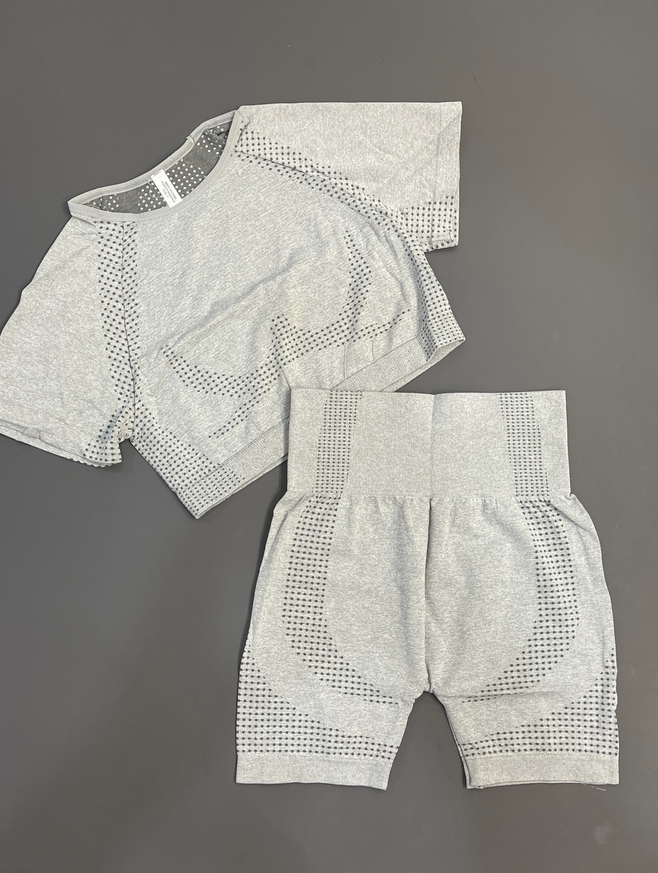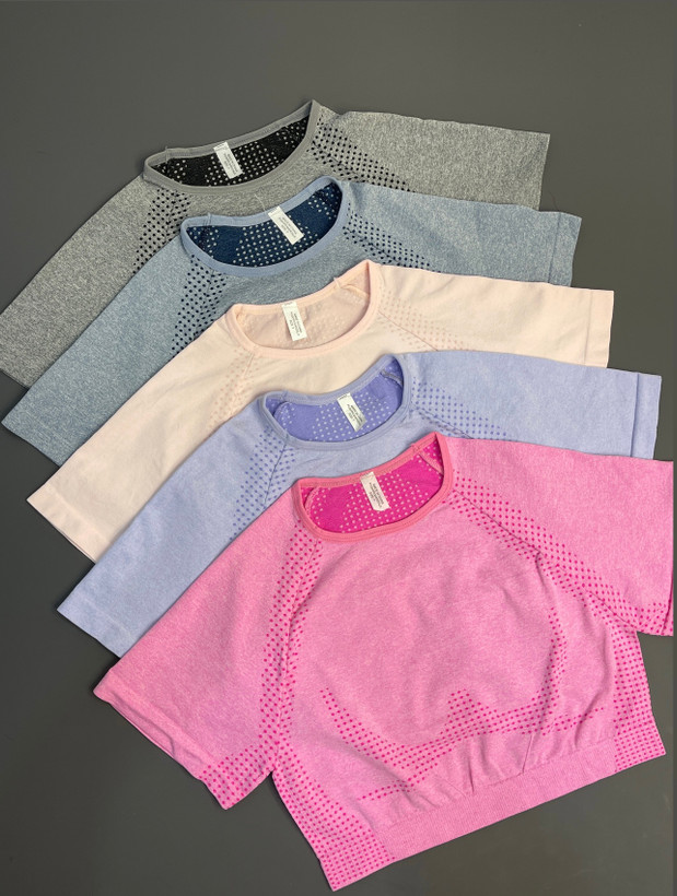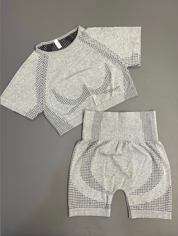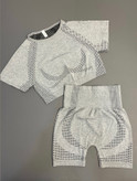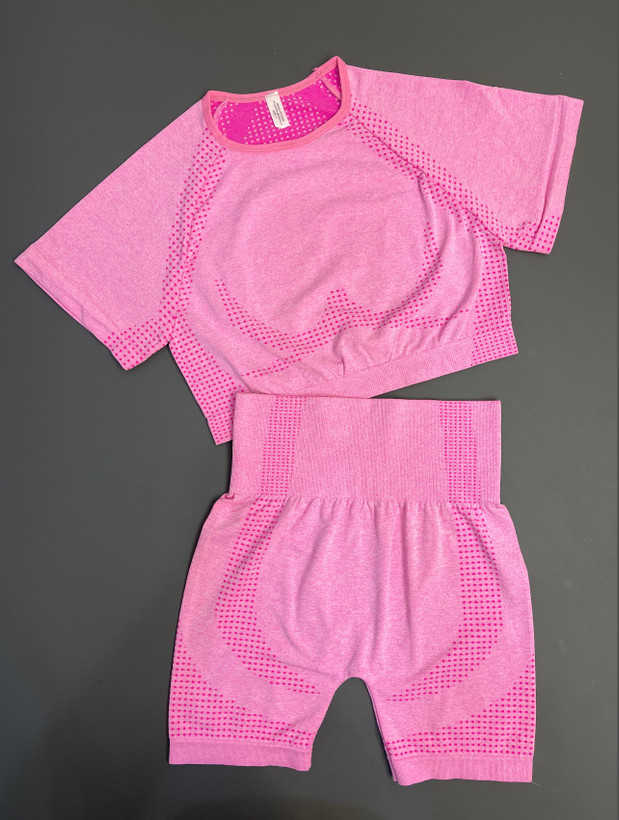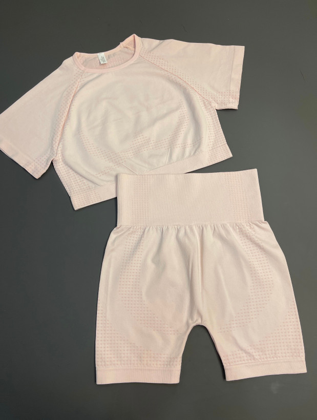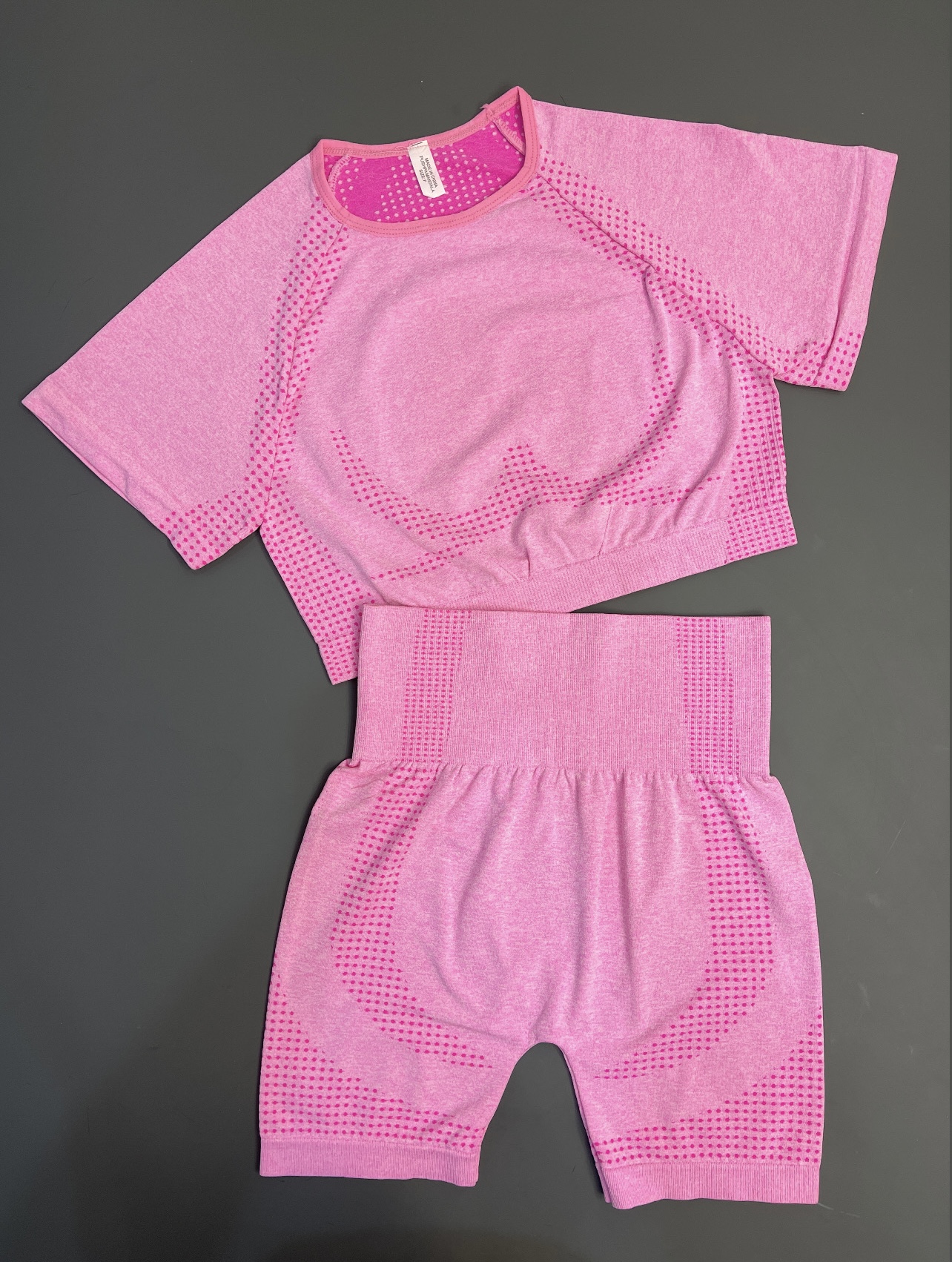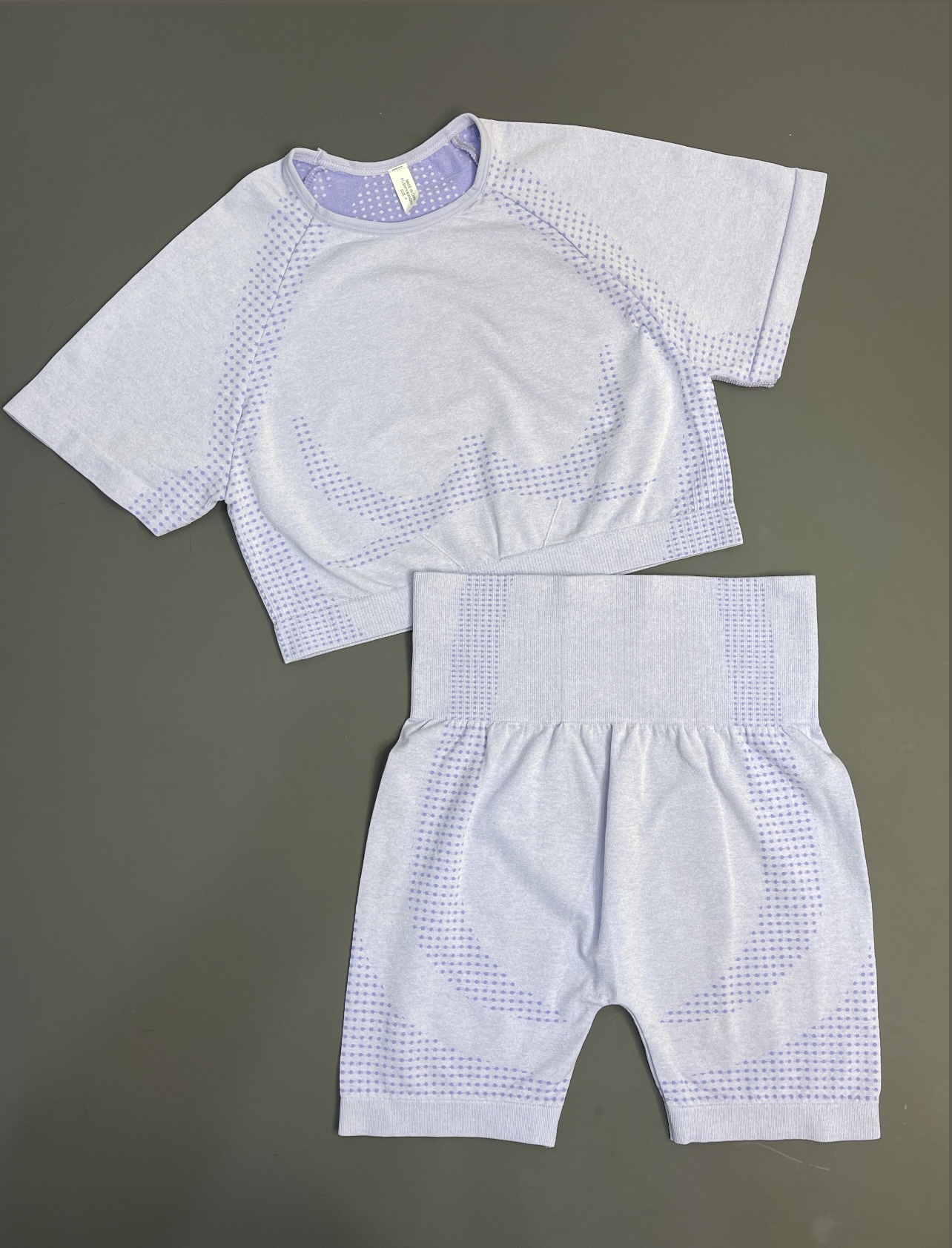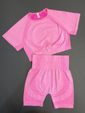 ست تیشرت کراپ و شلوارک ورزشی زنانه جنس سیملس کد 0557